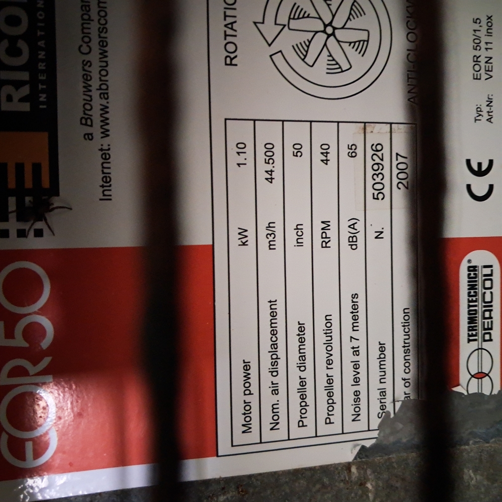 Kontakt os vedr.1 stk. brugt staldventilator 138x138x36 cm.