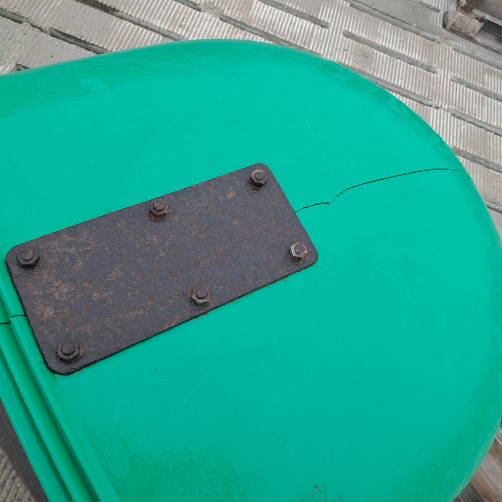 - OBS har en skade, som er repareret med en jernplade (se billede)