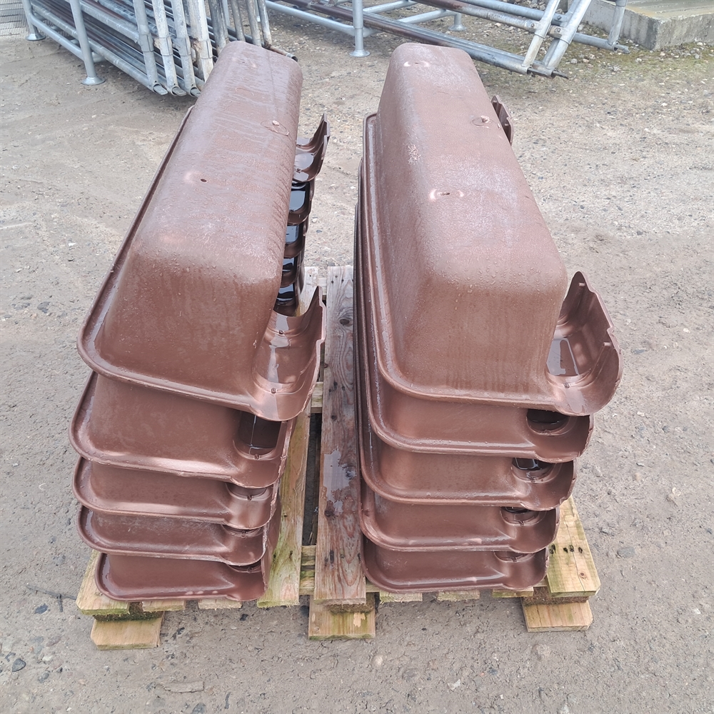 10 stk. brugte fodertrug 50 liter, længde: 1,20 m.