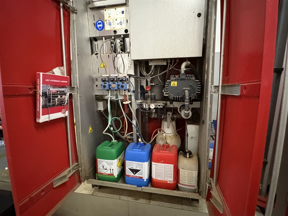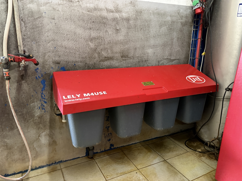 Komplet sæt med 2 stk. brugte Lely A4 malkerobotter, model venstre, årgang 2018.