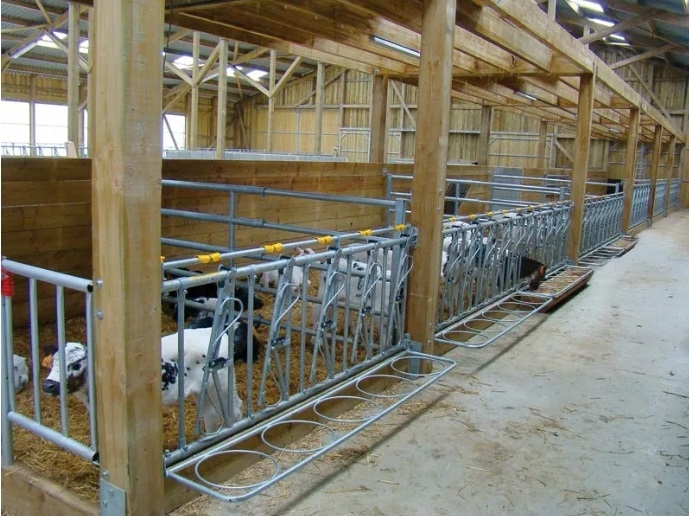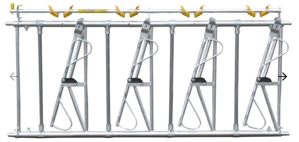Sikkerhedsfanggitre 1¼ x ¾ med justerbar halsvidde, til kalve til op til 6 måneder. Spandeholder og spande kan tilkøbes.
