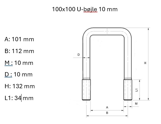 U-bøjle 100x100 mm., El. galv. 10mm.
