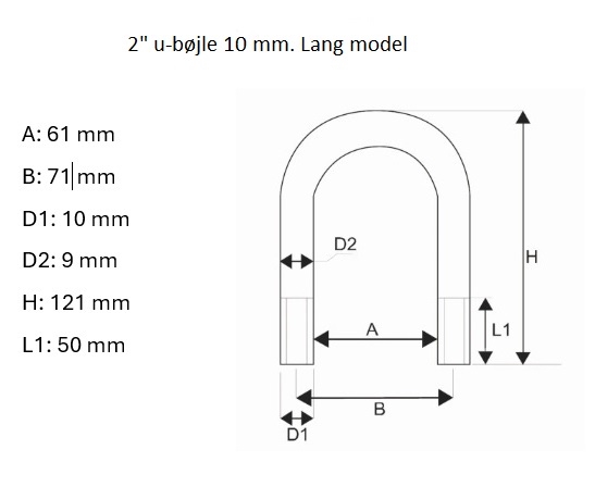 U-bøjle 2" ekstra lang 10mm, varm. galv. H: 101mm., 0,14 kg.