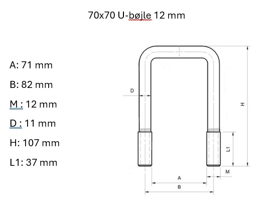 Kontakt os vedr.U-bøjle 70x70 mm. 12mm. varm. galv. H: 90mm.