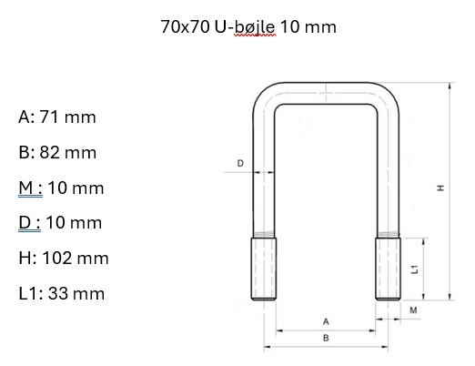 U-bøjle, 70x70mm. 10mm. varm. galv. H: 90mm.